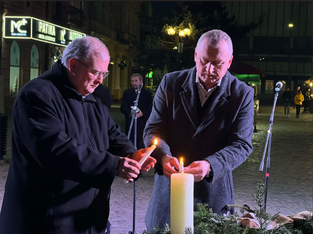 Другу свічку запалили міський голова Берегова Золтан Баб’як та настоятель римо-католицької церкви, вікарій отець Янош Молнар. У своєму зверненні Золтан Баб’як наголосив на важливості надії як внутрішньої сили, що допомагає долати щоденні труднощі та зберігати віру: «Світло надії сильніше за темряву. Це не абстрактне поняття – це ми з вами, ті, хто залишається тут, хто працює, підтримує одне одного і тримає наше місто живим. І звертаюся до тих, хто зараз далеко: Берегове – це ваш дім, і воно чекає на вас».