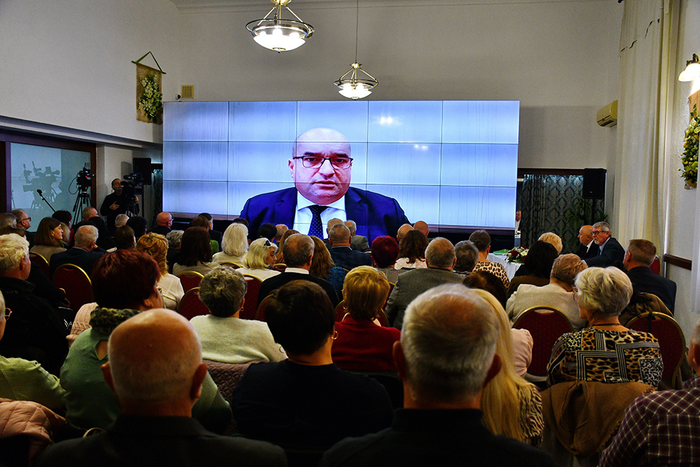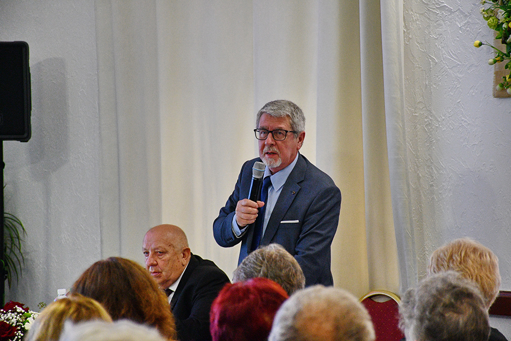 Gulácsy Géza, a „KMKSZ” Jótékonysági Alapítvány vezetője beszédében részletes áttekintést adott a szervezet 2025. évi tevékenységéről, különös tekintettel a pályázati programok állására. Elmondása szerint az alapítvány továbbra is azokat a programokat valósítja meg, amelyeket már hosszú évek óta eredményesen működtet, és a Magyarország által nyújtott támogatási rendszerek – ígéret szerint – a jövőben is fennmaradnak.