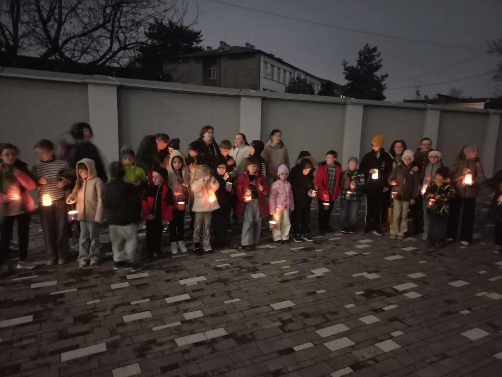 Наприкінці заходу в дворі Угорського дому запалили виготовлені ліхтарики і діти разом із батьками закрили атмосферний захід спільним співом.